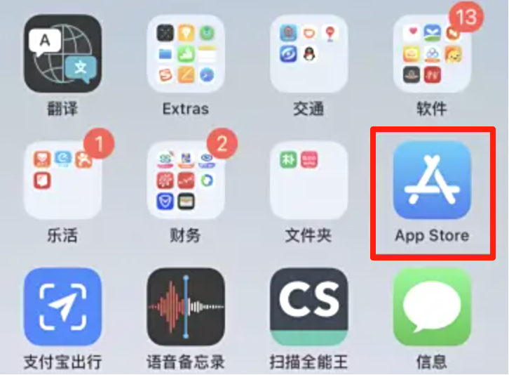 1.在苹果手机桌面上,点击App Store图标进入。